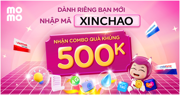 Chào bạn mới, MoMo tặng quà cực hời! Chỉ cần nhập mã “XINCHAO”, liên kết ngân hàng và nạp tiền từ 10.000đ, combo quà 500.000đ lập tức bay về Ví! Tải MoMo và nhập mã nhận quà ngay!