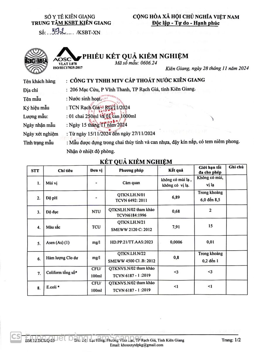- Kết quả kiểm nghiệm của Trung tâm Kiểm soát bệnh tật Kiên Giang tháng 11/2025 (01/12/2025)
