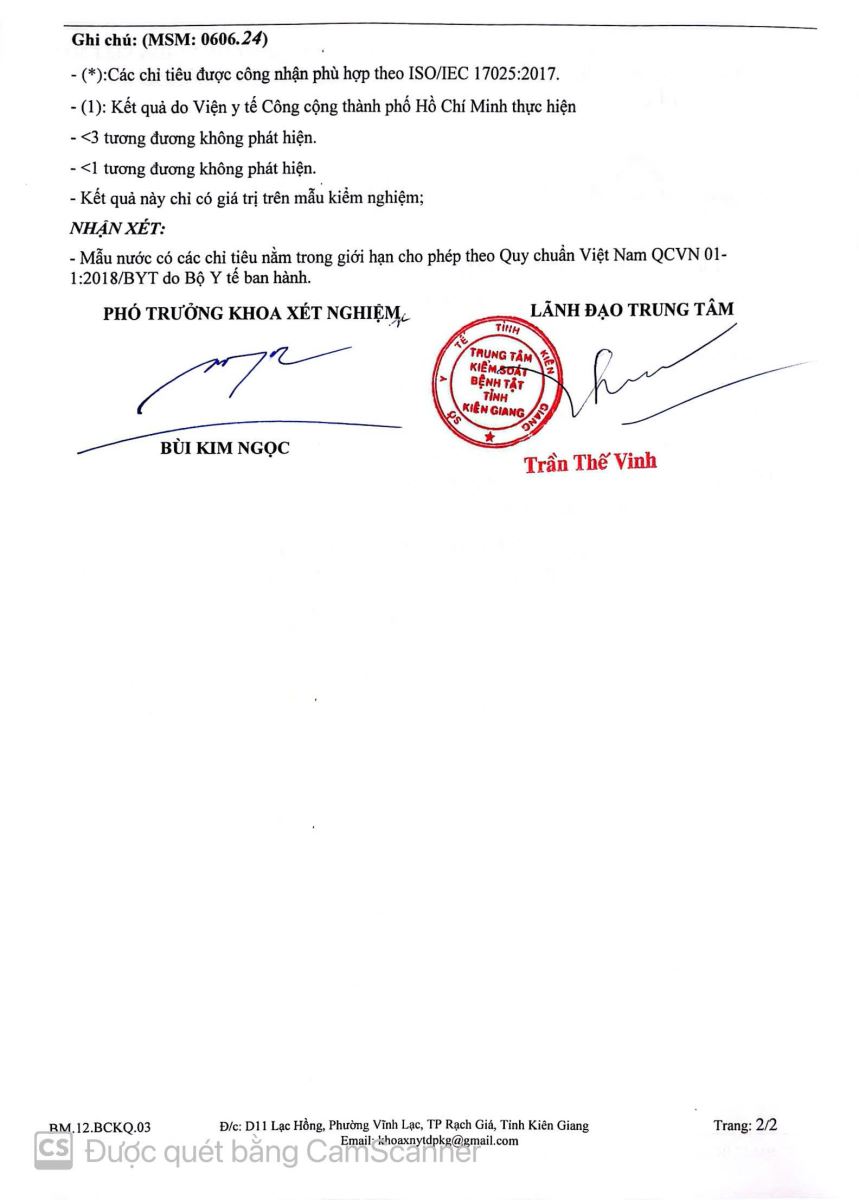 Kết quả kiểm nghiệm của Trung tâm Kiểm soát bệnh tật Kiên Giang tháng 11/2024