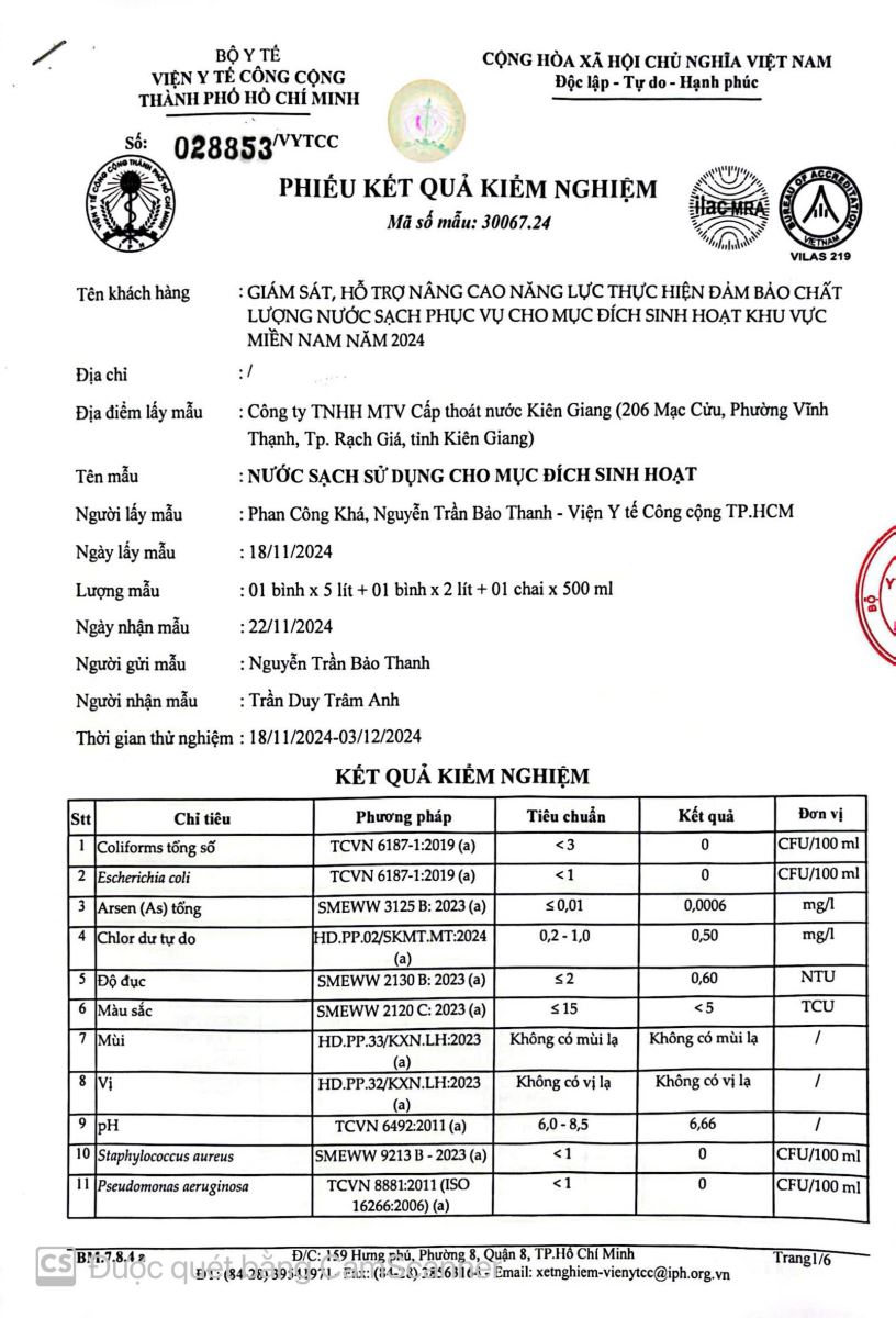 - Kết quả kiểm nghiệm của Trung tâm Kiểm soát bệnh tật Kiên Giang tháng 11/2025 (01/12/2025)