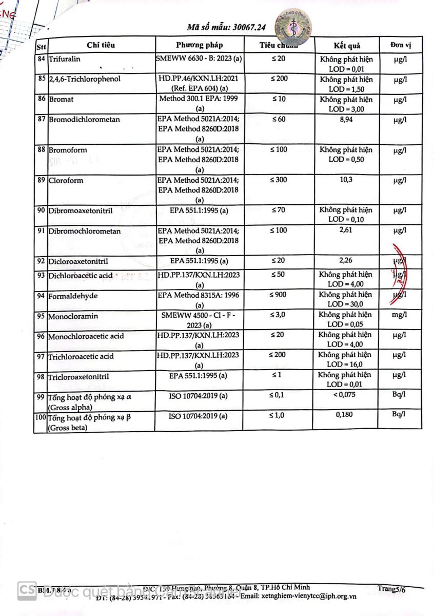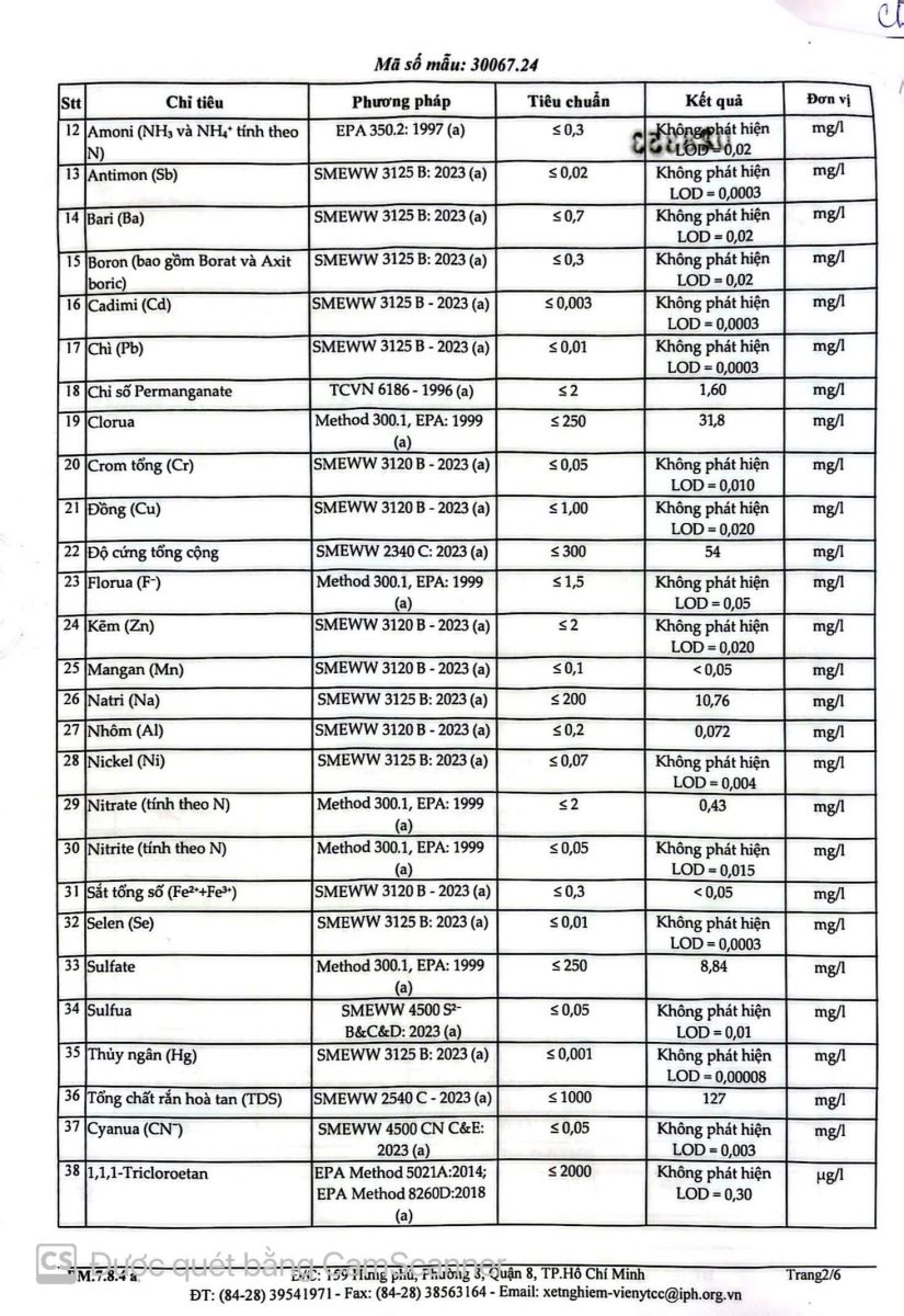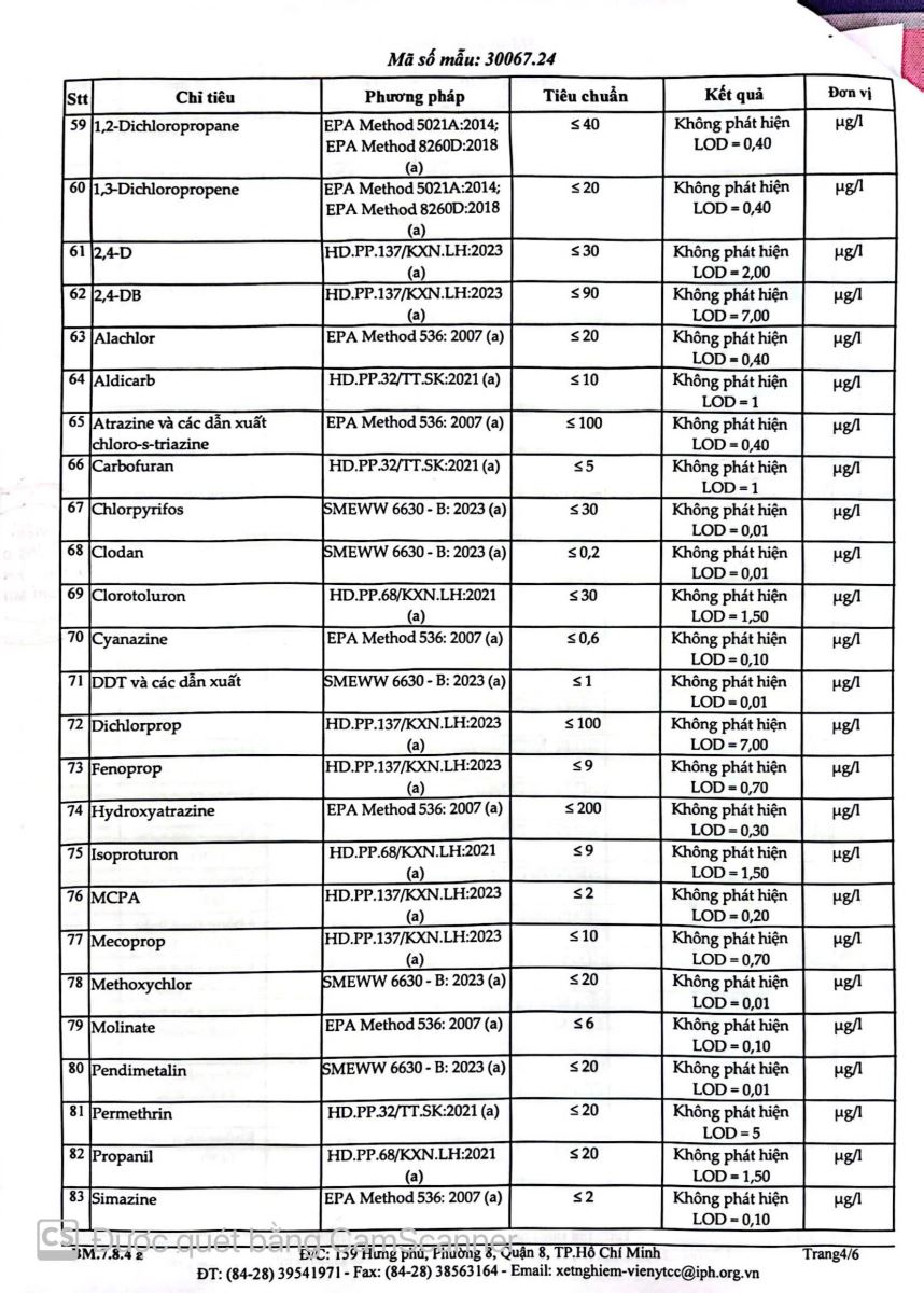 Kết quả kiểm nghiệm của Viện y tế công cộng thành phố Hồ Chí Minh