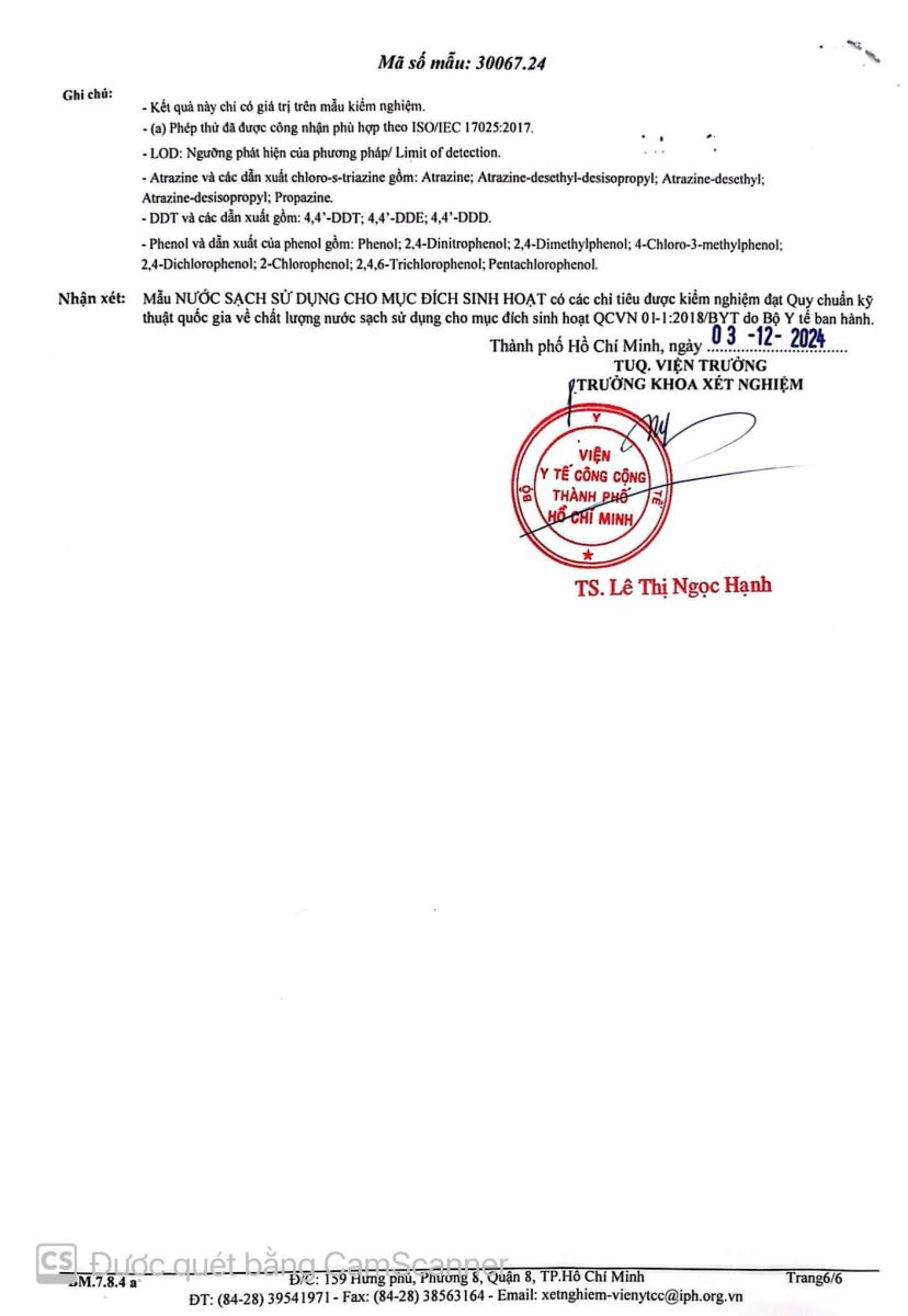 - Kết quả kiểm nghiệm của Công Ty Cổ Phần Khoa Học Công Nghệ Phân Tích Môi Trường Biển Đức tháng 12 năm 2025 (23/12/2025)