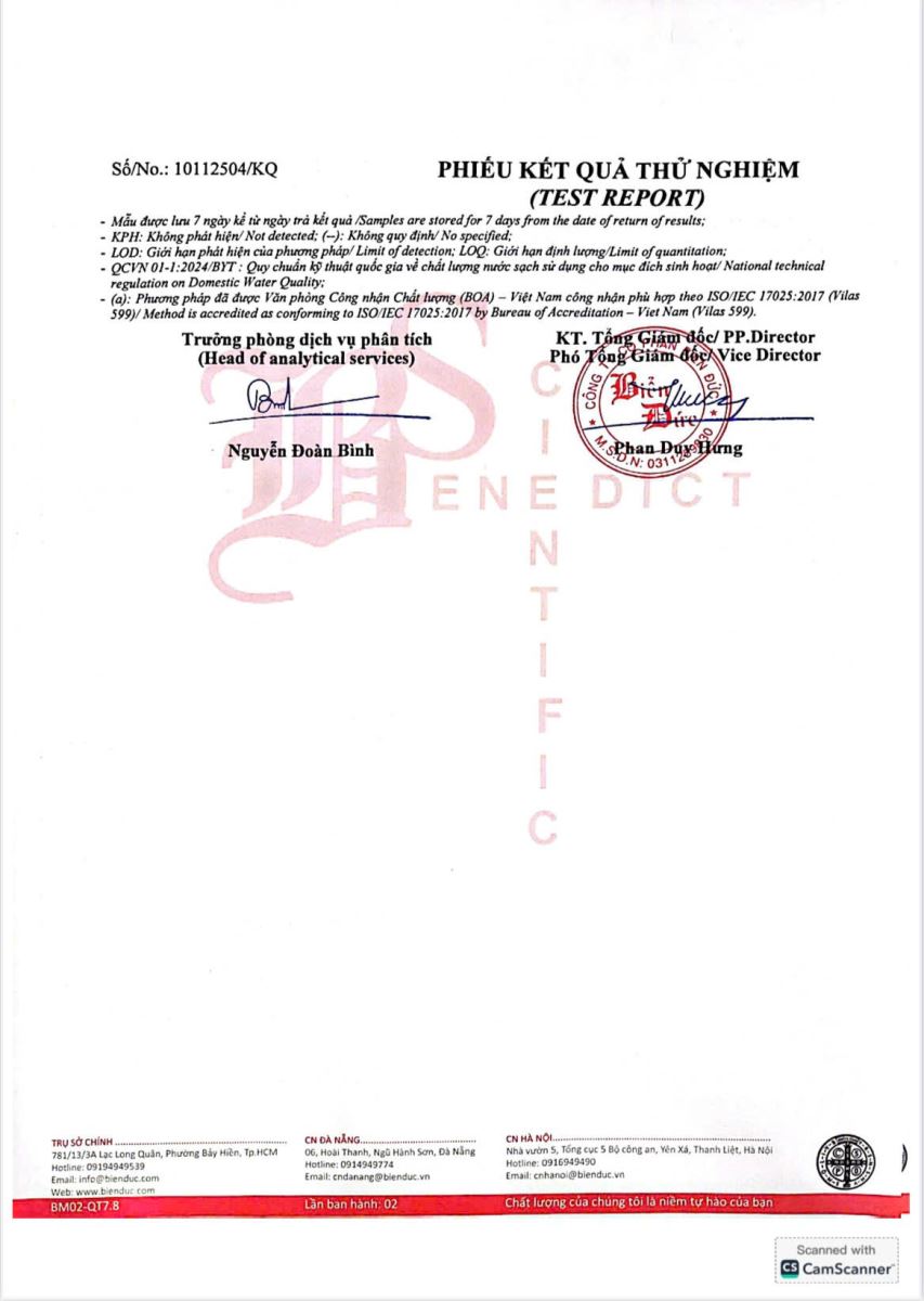 - Kết quả kiểm nghiệm của Công Ty Cổ Phần Khoa Học Công Nghệ Phân Tích Môi Trường Biển Đức tháng 08 năm 2025 (26/08/2025)
