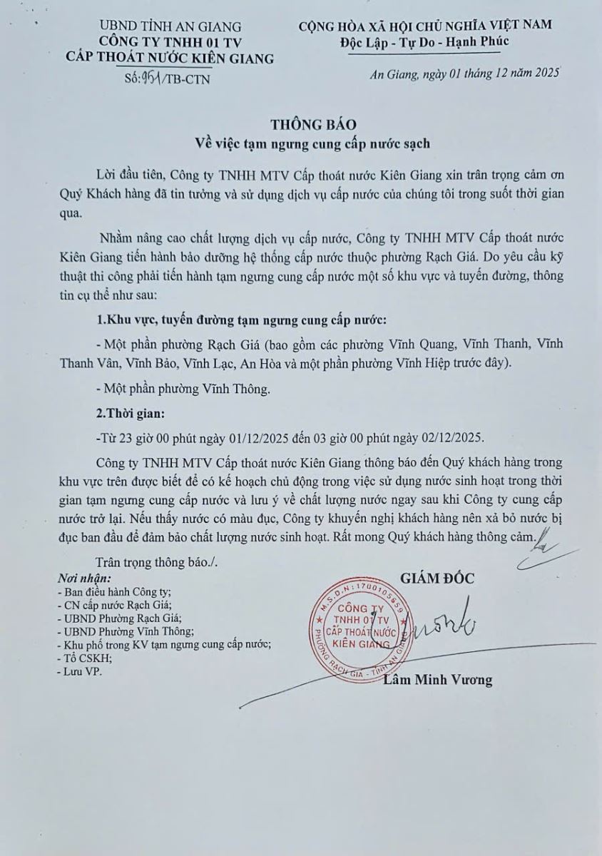 CÔNG TY TRÁCH NHIỆM HỮU HẠN MỘT THÀNH VIÊN CẤP THOÁT NƯỚC KIÊN GIANG