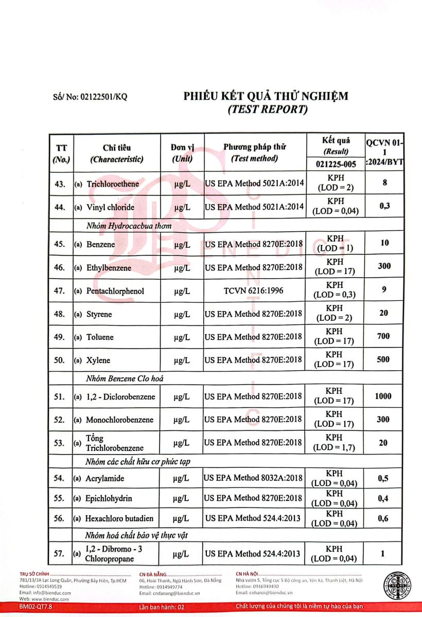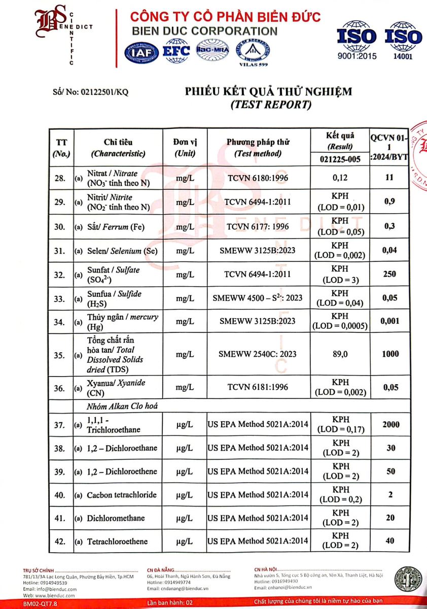 - Kết quả kiểm nghiệm của Công Ty Cổ Phần Khoa Học Công Nghệ Phân Tích Môi Trường Biển Đức tháng 08 năm 2025 (26/08/2025)