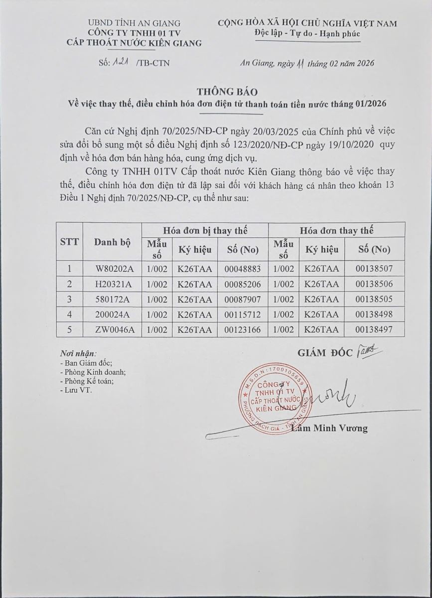 CÔNG TY TRÁCH NHIỆM HỮU HẠN MỘT THÀNH VIÊN CẤP THOÁT NƯỚC KIÊN GIANG