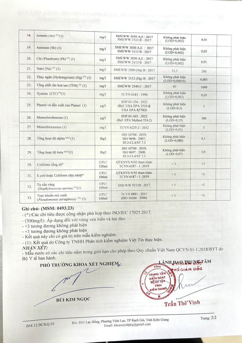 - Kết quả kiểm nghiệm của Công Ty Cổ Phần Khoa Học Công Nghệ Phân Tích Môi Trường Biển Đức tháng 12 năm 2025 (23/12/2025)