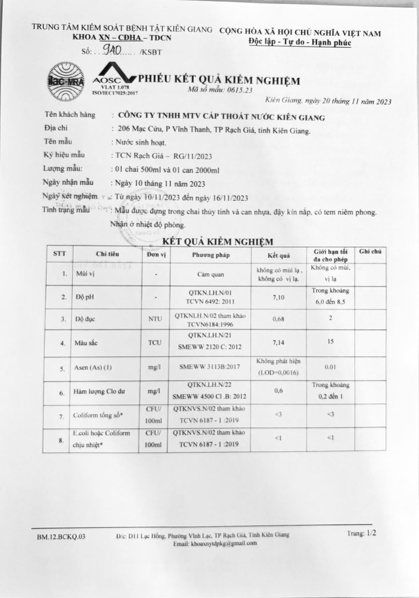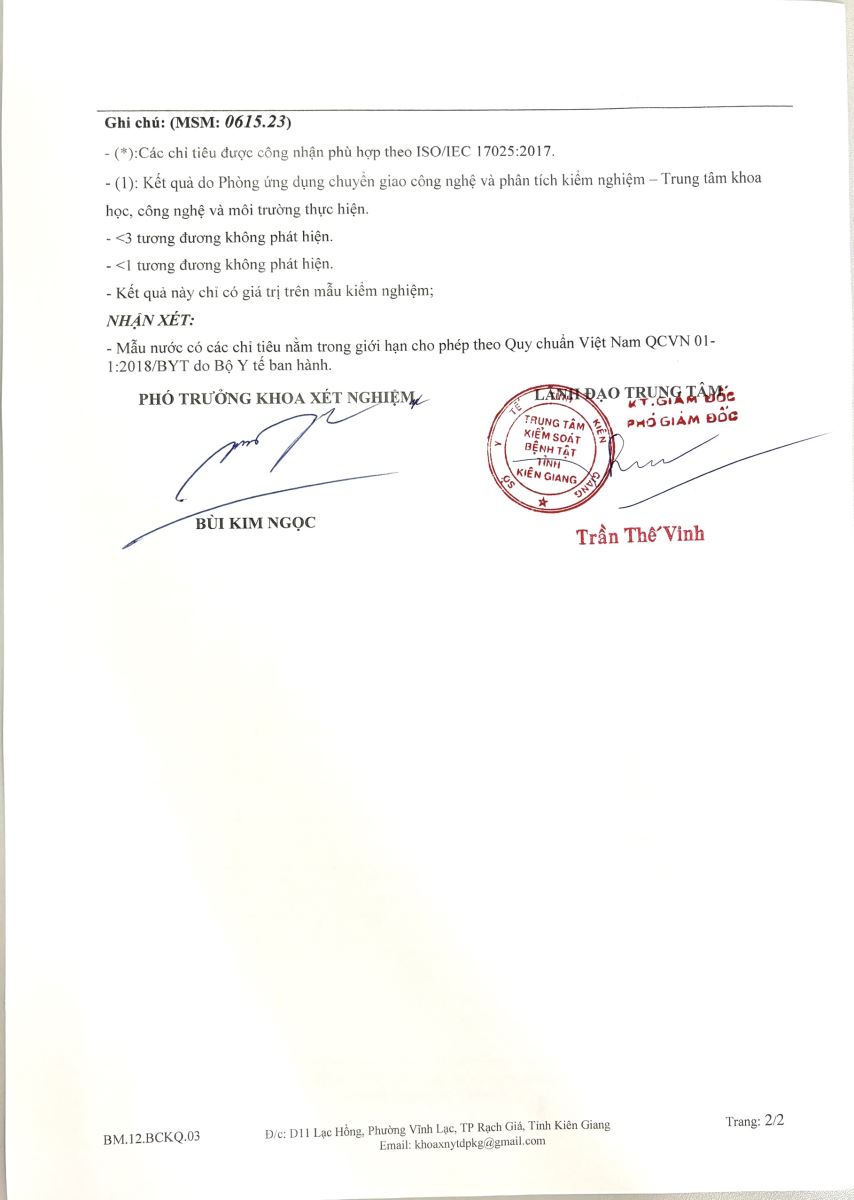 - Kết quả kiểm nghiệm của Trung tâm Kiểm soát bệnh tật Kiên Giang tháng 11/2025 (01/12/2025)