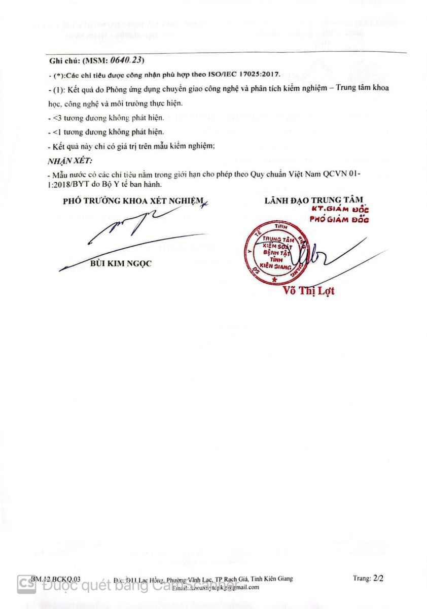 - Kết quả kiểm nghiệm của Trung tâm Kiểm soát bệnh tật Kiên Giang tháng 11/2025 (01/12/2025)