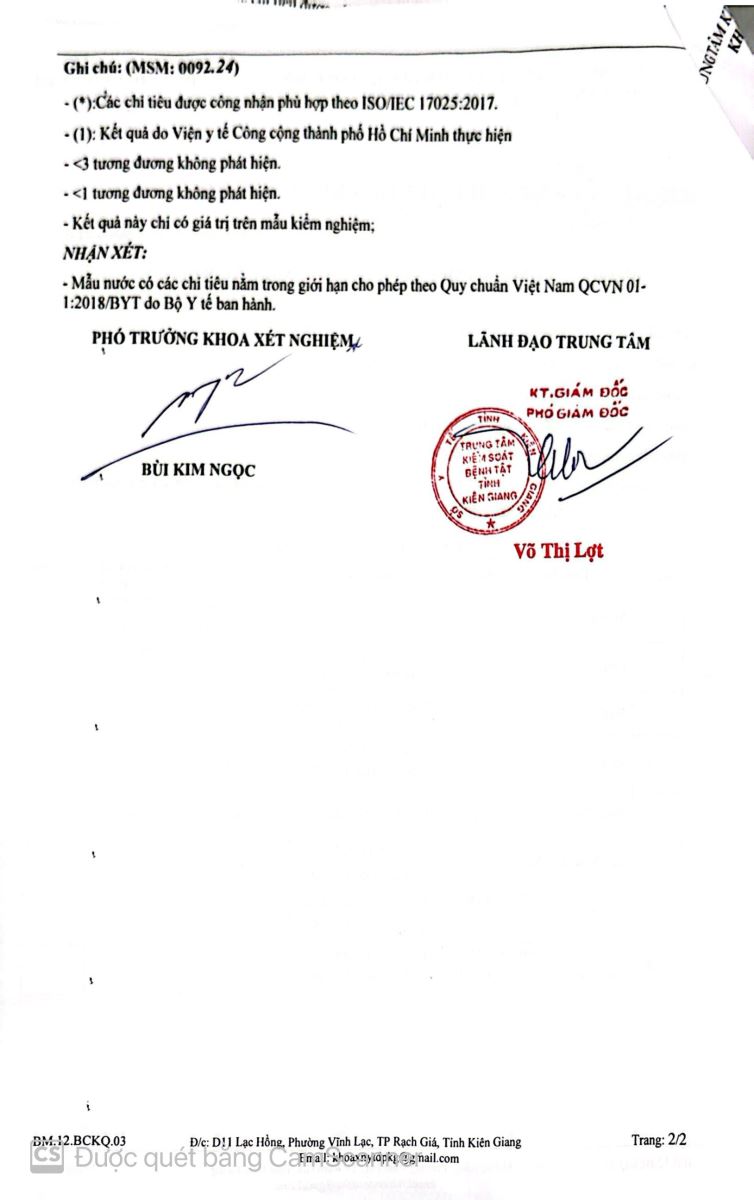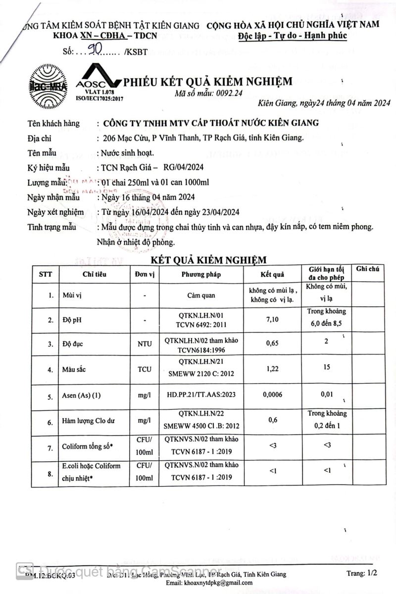 Kết quả kiểm nghiệm của Trung tâm Kiểm soát bệnh tật Kiên Giang tháng 04/2024