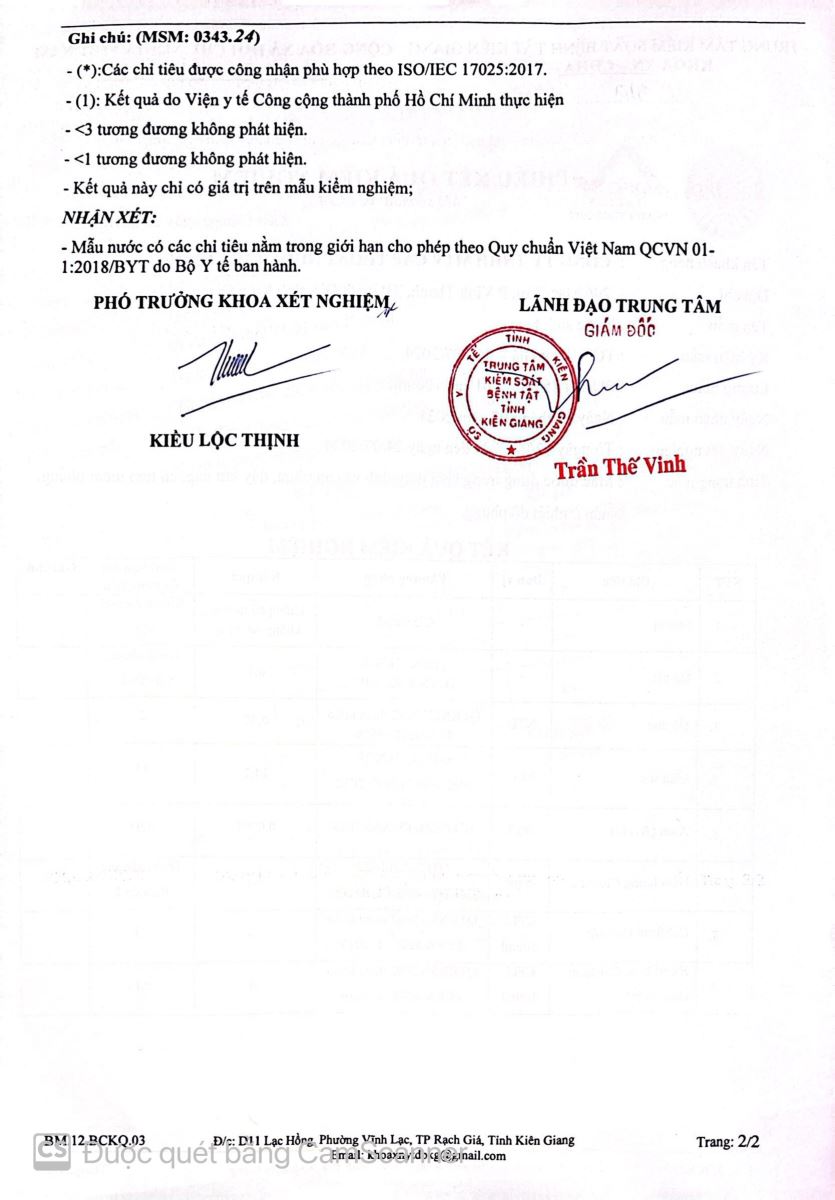 Kết quả kiểm nghiệm của Trung tâm Kiểm soát bệnh tật Kiên Giang tháng 07/2024